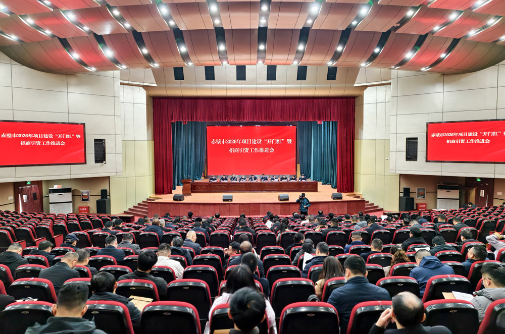 2月3日上午,赤壁市举行2026年一季度项目建设暨招商引资工作推进会,深入贯彻落实中央、省委、咸宁市委经济工作会议精神,全面总结回顾 2025 年相关工作,系统谋划部署 2026 年目标任务,动员全市上下提振精神、锚定目标、真抓实干,为 “十五五”开好局、起好步打牢基础。市委书记董方平出席会议并讲话,市委副书记、市长彭光平主持会议。