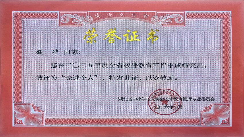 会议授予赤壁市和安中小学生社会实践基地“2025年度湖北省校外教育工作先进单位”荣誉称号,授予教学部钱冲“先进个人”;荣誉的取得既是对和安基地持续深耕校外教育、助力青少年全面发展的充分肯定,也体现了其在实践育人领域的扎实成效。
