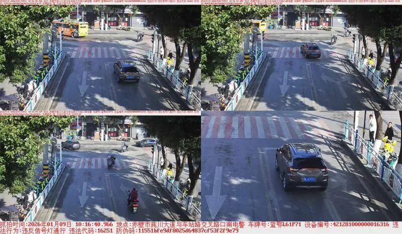 近日,赤壁市公安局交管大队对辖区内闯红灯的车辆进行集中曝光,通过公开违法信息,强化对驾驶人的警示教育,引导群众自觉遵守交通法规,安全文明出行。