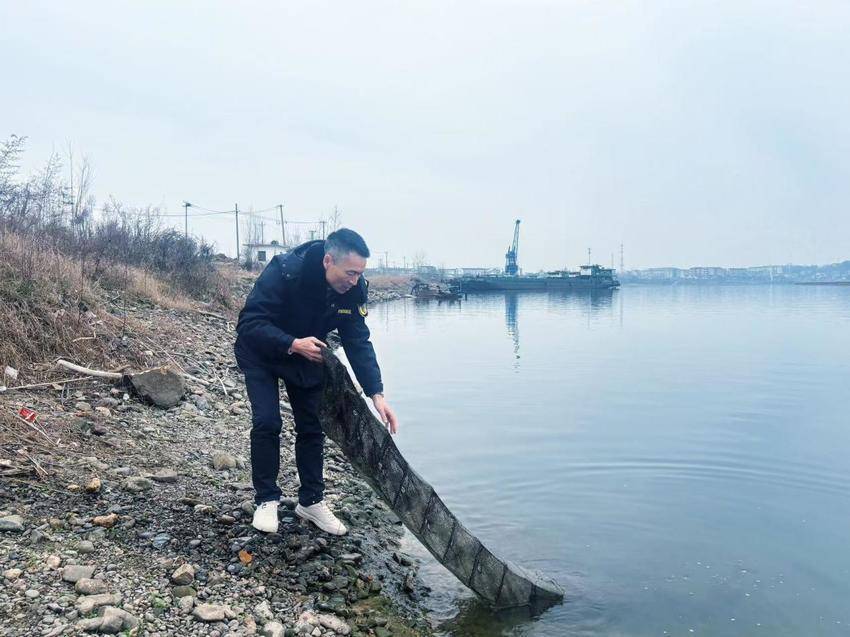 2月4日,立春。赤壁市陆水河车埠段,51岁的鲍勇军身着巡护制服正沿着河岸巡河。行至一处比人还高的草丛前,他弯腰俯身,径直钻了进去。“这种密密匝匝的高草,最容易被人当作天然遮挡,偷偷布网下钩,必须仔细检查。”鲍勇军说。