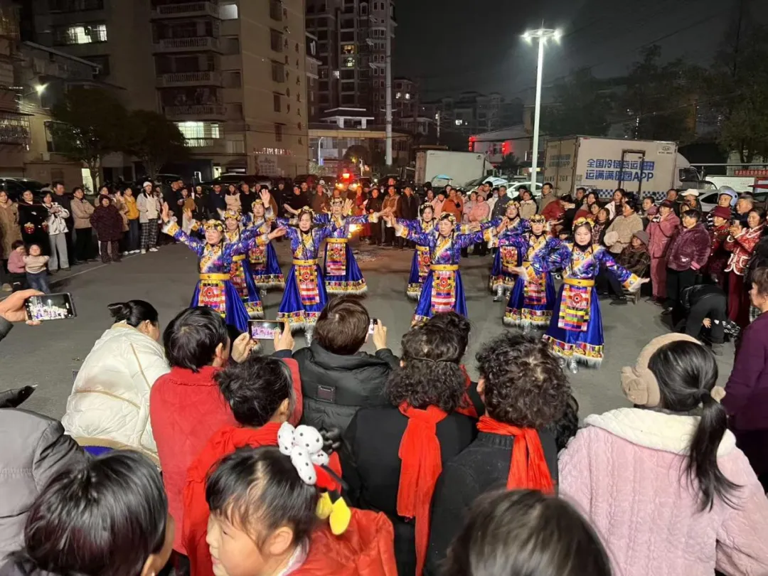2月11日,赤壁市陆水湖街道举办“篝火暖邻里,青泉一家亲”迎新年晚会,百余名居民围炉相聚、载歌载舞,共迎佳节、共话和谐。