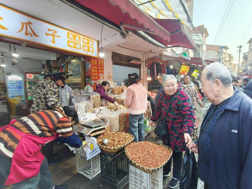 老街两侧,新鲜蔬菜、鲜活水产、腊味干货、春联福字等年货琳琅满目。商贩的吆喝声、市民的询价声交织在一起,尽显浓浓人间烟火气。大家穿梭其间精心挑选,在热闹中感受传统年俗,寄托新春美好期盼。