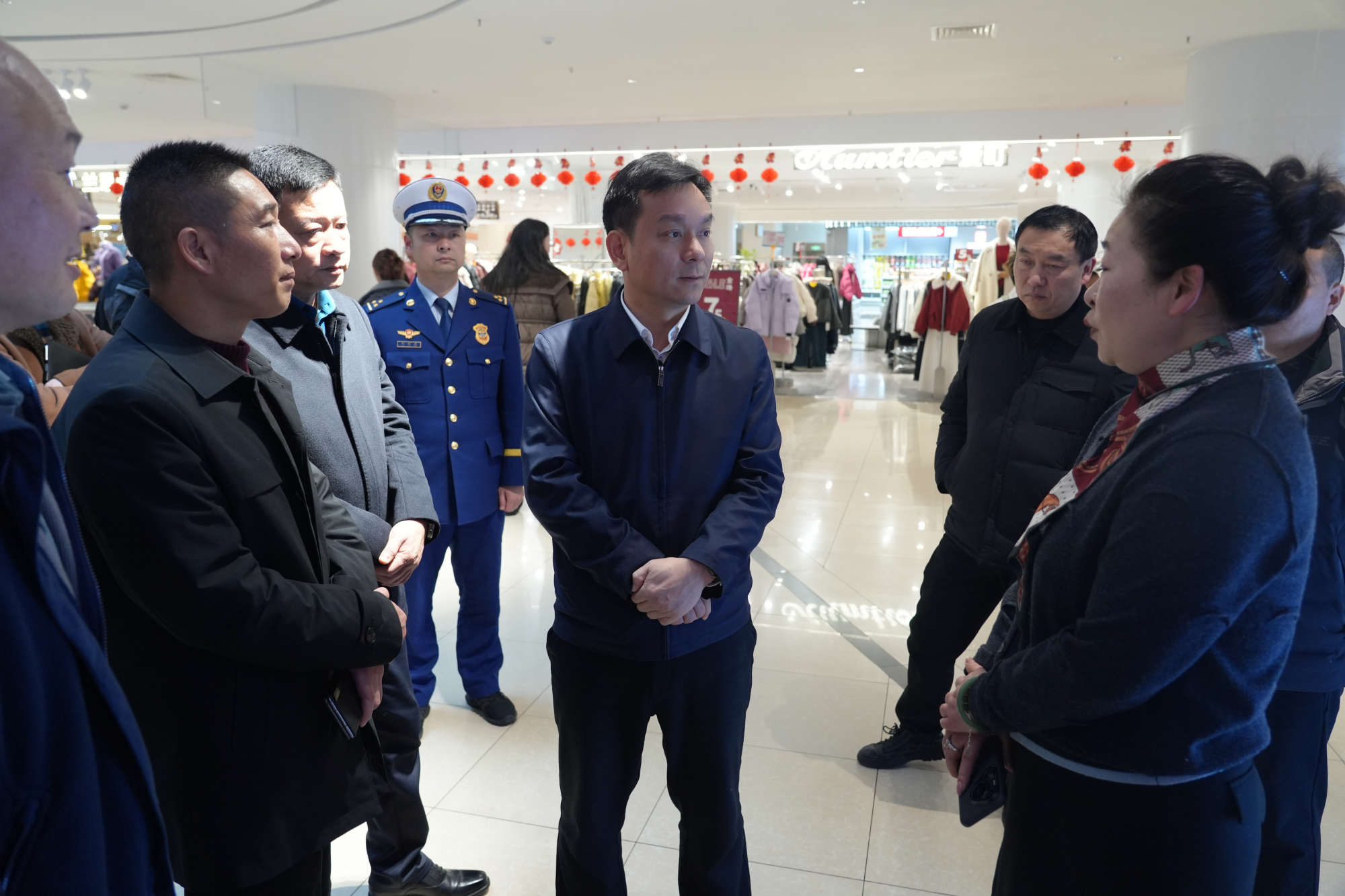 彭光平一行还前往摩尔城综合商超,检查节日市场供应、食品安全及消防通道管理情况。他强调,商超人员密集,要严格落实各项消防措施,保障物资充足、价格稳定,为市民营造安全放心的购物环境。