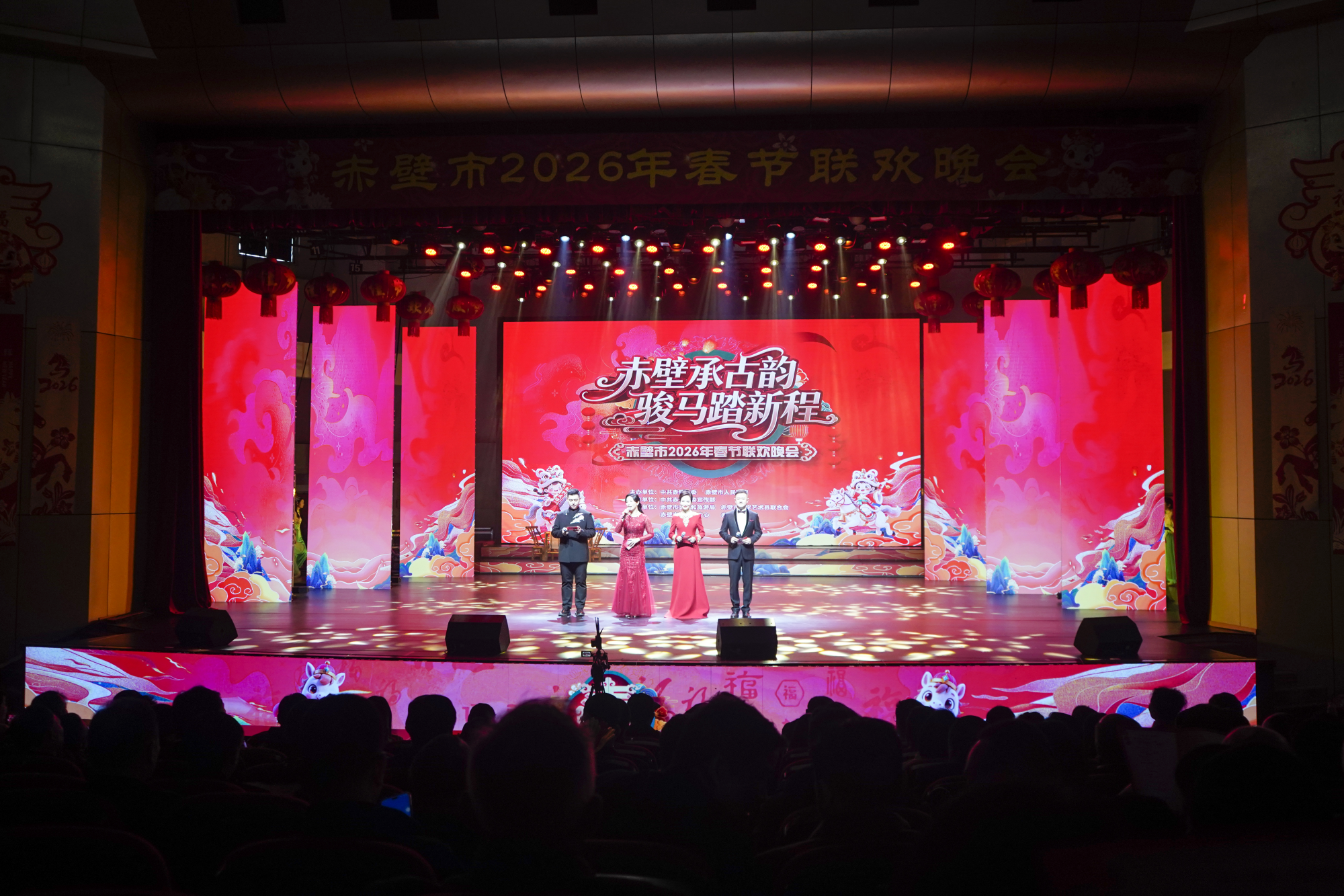 2月14日(农历腊月二十七),赤壁承古韵 骏马踏新程——赤壁市2026年春节联欢晚会在市会议中心精彩上演。晚会紧扣马年“奋进、奔腾、逐梦”主题,深度融合赤壁三国历史文脉、陆水湖生态风光、羊楼洞万里茶道文化与新时代发展成就,采用线下演出与线上直播联动方式,为全市人民奉献了一场有底蕴、有温度、有气势的新春文化盛宴。