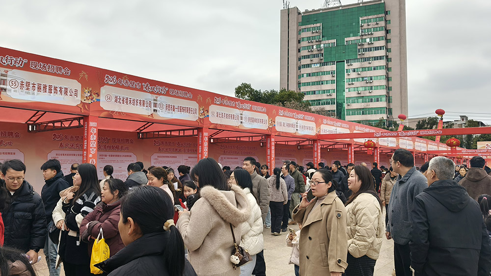 该招聘会是赤壁2026年“春风行动”系列活动之一。2月1日——3月31日,赤壁还将通过现场招聘、直播带岗、送岗下乡等方式开展25次活动,并提供就业创业培训、指导、补贴及资金场地扶持等服务。