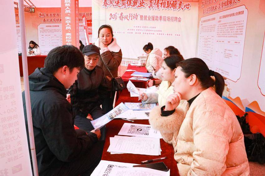 赤壁市2026年“春风行动”暨就业援助季现场招聘会以招工、招留守儿童父母、招亲“三招合一”的创新模式,搭建了高效的门口就业、亲情呵护、姻缘牵线的对接平台,满足了不同群体的多元化需求。