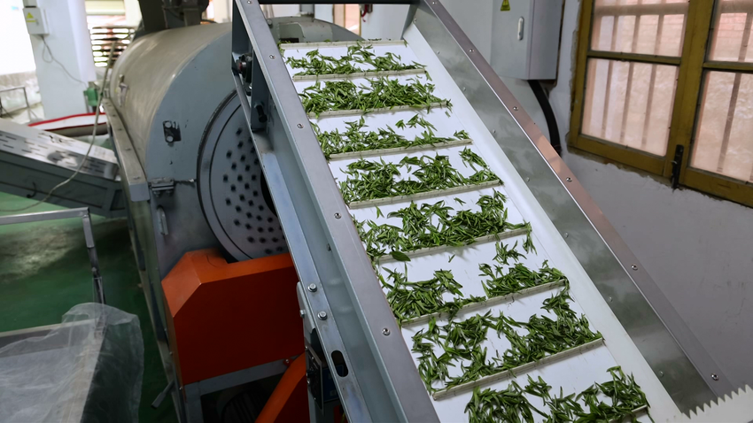 茶园里采茶正忙,生产车间里机声隆隆。鲜叶一采下来就立刻被送往车间加工。潘向阳告诉记者,合作社一直坚持“以质取胜”的发展思路;茶园全程采用生物防控技术,从不使用化学农药,今年还对杀青设备进行了技术改良,使天然茶香得到更好保留。
