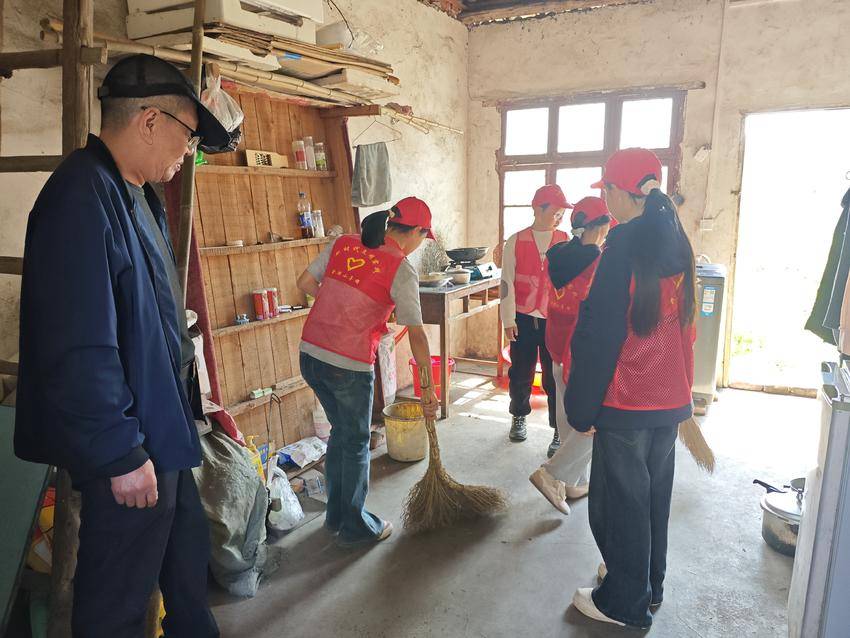 当天上午,学生志愿者带着米、油等慰问品,走进社区困难老人家中。他们围在老人身边,悉心询问老人身体状况和生活近况,主动帮忙打扫房间、整理杂物,有的还为老人捶背揉肩,用质朴举动传递温暖。随行教师还向老人们讲解春季保健知识,提醒老人注意天气变化、保重身体。