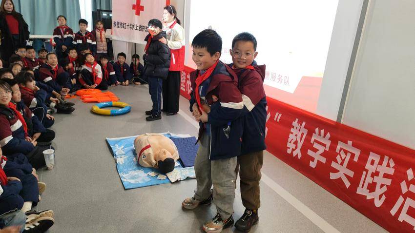 3月21日,赤壁市实验小学师生走进市科技馆,开展安全科普实践活动。赤壁市红十字水上救护志愿服务队为师生带来防溺水及应急救护实操公益课。