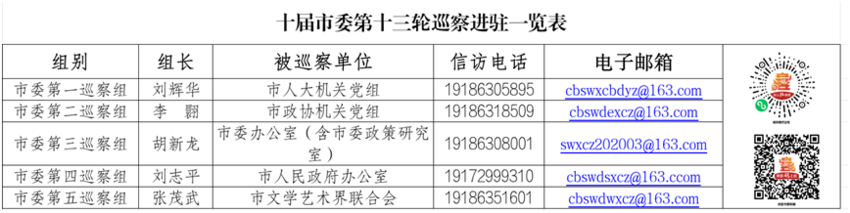 本轮巡察为常规巡察,巡察期间设立信访电话、电子邮箱、微信小程序“荆楚码上巡”以及现场接访点等,主要受理关于被巡察党组织领导班子及其成员、下属单位主要负责人和重要岗位党员干部违反政治纪律、组织纪律、廉洁纪律、群众纪律、工作纪律和生活纪律等方面的举报和反映。巡察组受理信访截止时间为4月24日。