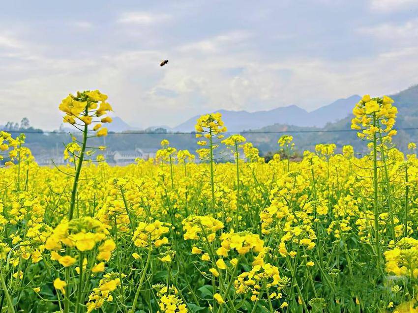 春日的七里冲处处生机,蜜蜂穿梭花间,游人漫步打卡,孩童嬉戏奔跑。这片藏身在龙佑温泉度假区至五洪山路的一片金黄,城区驱车十几分钟可达。是周末踏青、亲子游玩、摄影采风的好去处,人们漫步花海、围坐野餐,用镜头定格春日美好。