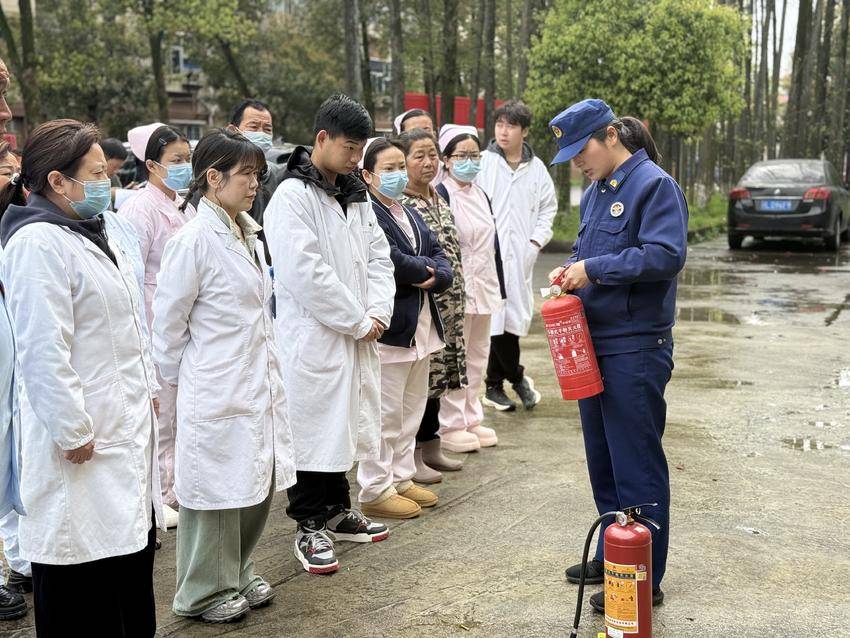“火焰蓝”宣教队结合养老院人员密集、行动不便等特点,围绕火灾预防、初期火灾扑救、人员疏散逃生、报警求助等核心内容,重点讲解了消防安全“四个能力”建设要求,用通俗易懂的语言逐一拆解知识点,结合典型养老机构火灾案例,深刻剖析违规用电、杂物堆积等隐患的危害,引导职工树牢“安全第一、预防为主”理念。理论讲解结束后,宣教队现场模拟火情场景组织开展实操演练,演示灭火器“提、拔、握、压”使用步骤及消火栓操作流程,指导职工掌握有序撤离的方法,分组进行实操训练,纠正操作误区,确保人人熟练掌握应急处置技能。