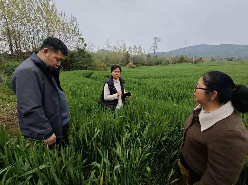 在新店镇、官塘驿镇、中火铺镇的连片油菜田和小麦田里,农技人员仔细观察作物长势,仔细查看病虫害发生情况,与种植户面对面交流,详细询问近期田间管理情况。针对当前阴雨天气,技术人员强调,角果期是产量的关键时期,要及时做好关键田管措施,并推荐了“一补四增”的综合管理措施,即补充镁肥(有时配合硼肥),达到增粒数、增粒重、增油分、增抗性的目的。对于小麦,重点指导农户识别和防控条锈病、赤霉病和蚜虫,提醒农户注意田间湿度管理,适时开展统防统治。