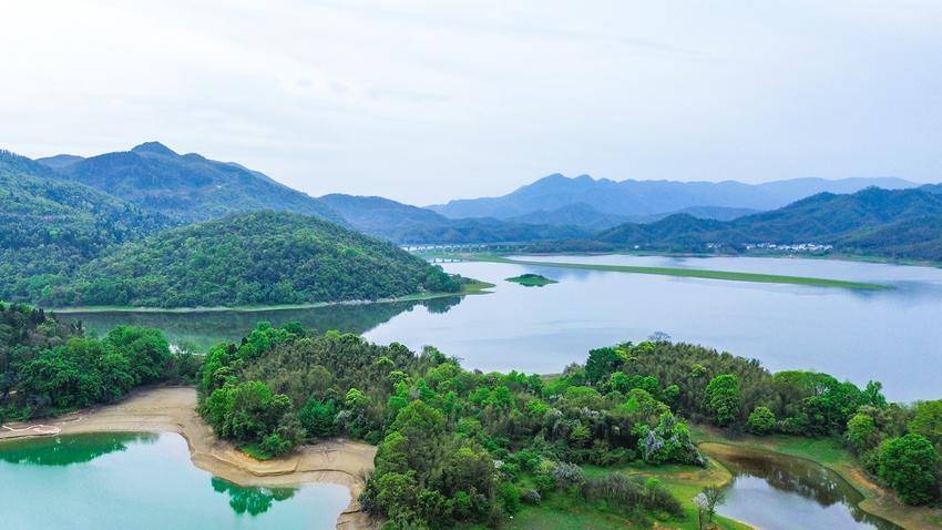 春风和煦,万物勃发,陆水湖呈现出一派秀美宜人的春日风光。湖面碧波荡漾,清澈明净,一座座岛屿错落有致,青山叠翠,绿意盎然。远山如黛,近水含情,蓝天白云与湖光山色交相辉映,构成一幅生态和谐、清新秀丽的山水画卷。