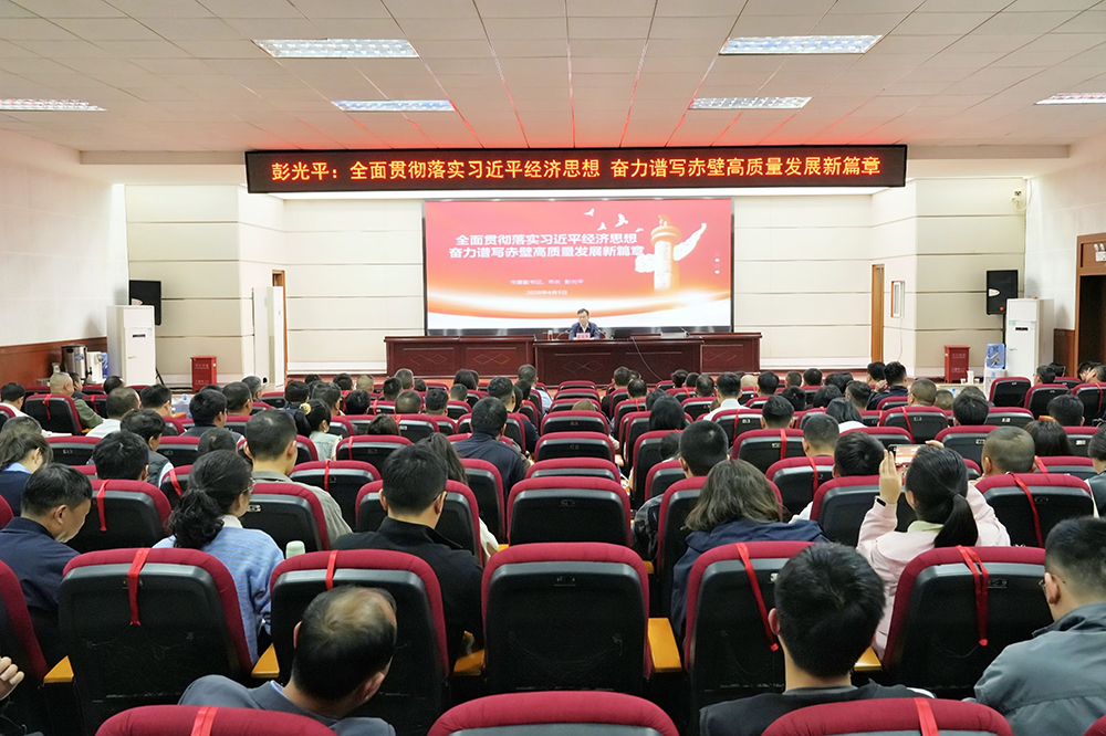 彭光平围绕“全面贯彻落实习近平经济思想 奋力谱写赤壁高质量发展新篇章”主题,结合赤壁发展实际与自身学习体会,向全体学员系统阐释了习近平经济思想基本内容、核心要义和当前经济工作重点要求。他强调,要坚持一以贯之、持续跟进学,全面准确深刻理解习近平经济思想,牢牢把握进入新发展阶段、贯彻新发展理念、构建新发展格局、推动高质量发展的核心要义和基本要求,做到入脑入心、真学真懂、真信真用、融会贯通,始终保持战略定力、坚定发展信心,推动各个领域工作质效全面提升,真正实现赤壁经济社会高质量发展。
