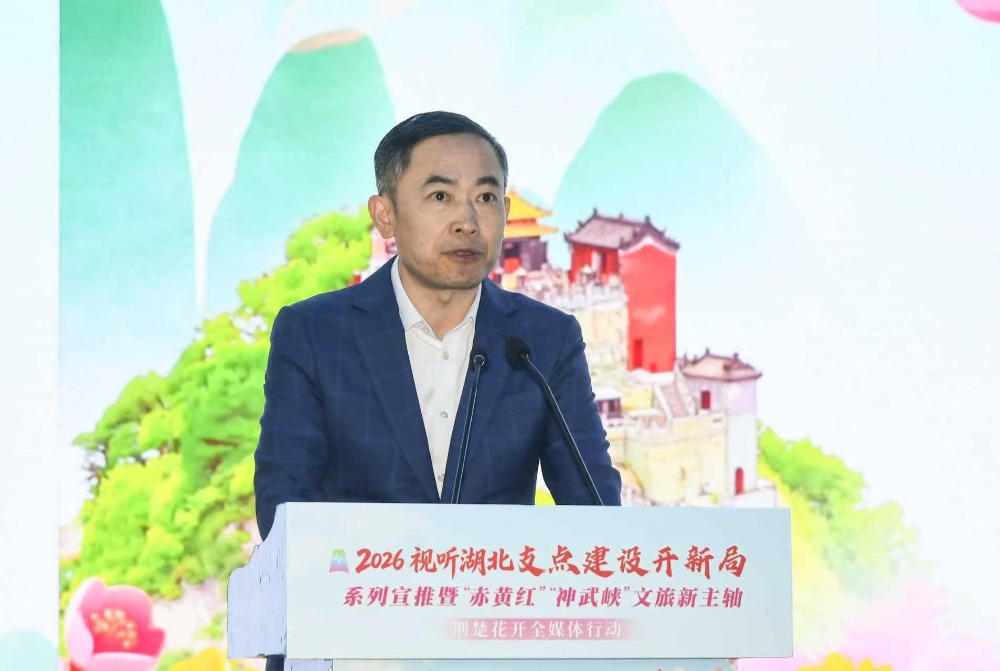 4月9日下午,2026视听湖北“支点建设开新局”系列宣推暨“赤黄红”“神武峡”文旅新主轴·荆楚花开全媒体行动启动仪式在三国赤壁古战场举行。省广播电视局党组成员、副局长汪长君,湖北长江广电传媒集团党委委员、副总经理孙汀娟,咸宁市委常委、常务副市长王刚出席仪式并致辞。