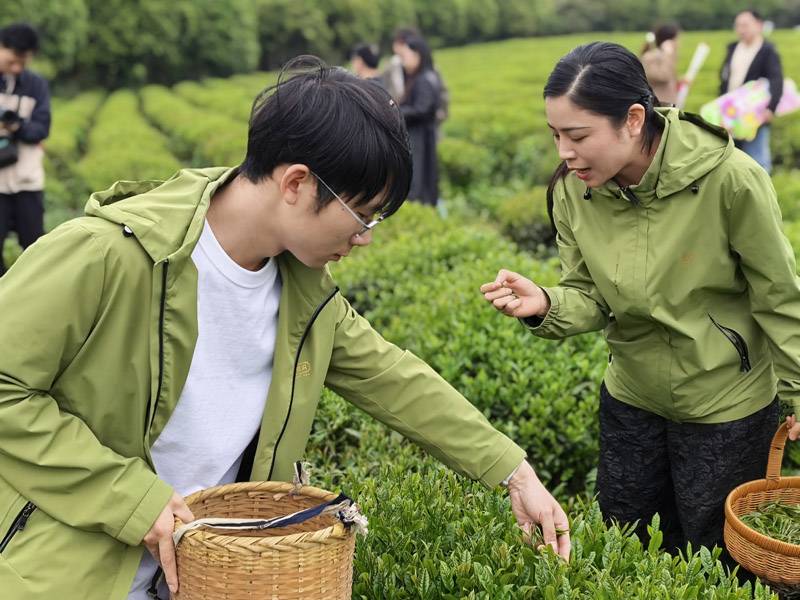 在湖北青砖茶产业发展集团,采风团体验春茶采摘技艺,参观自动化青砖茶生产线、“洞茶木仓”恒温仓储中心与大数据管控平台,了解从茶园管护、渥堆发酵到压制定型全链条生产流程,感受传统制茶技艺与现代数字化管理的深度融合。