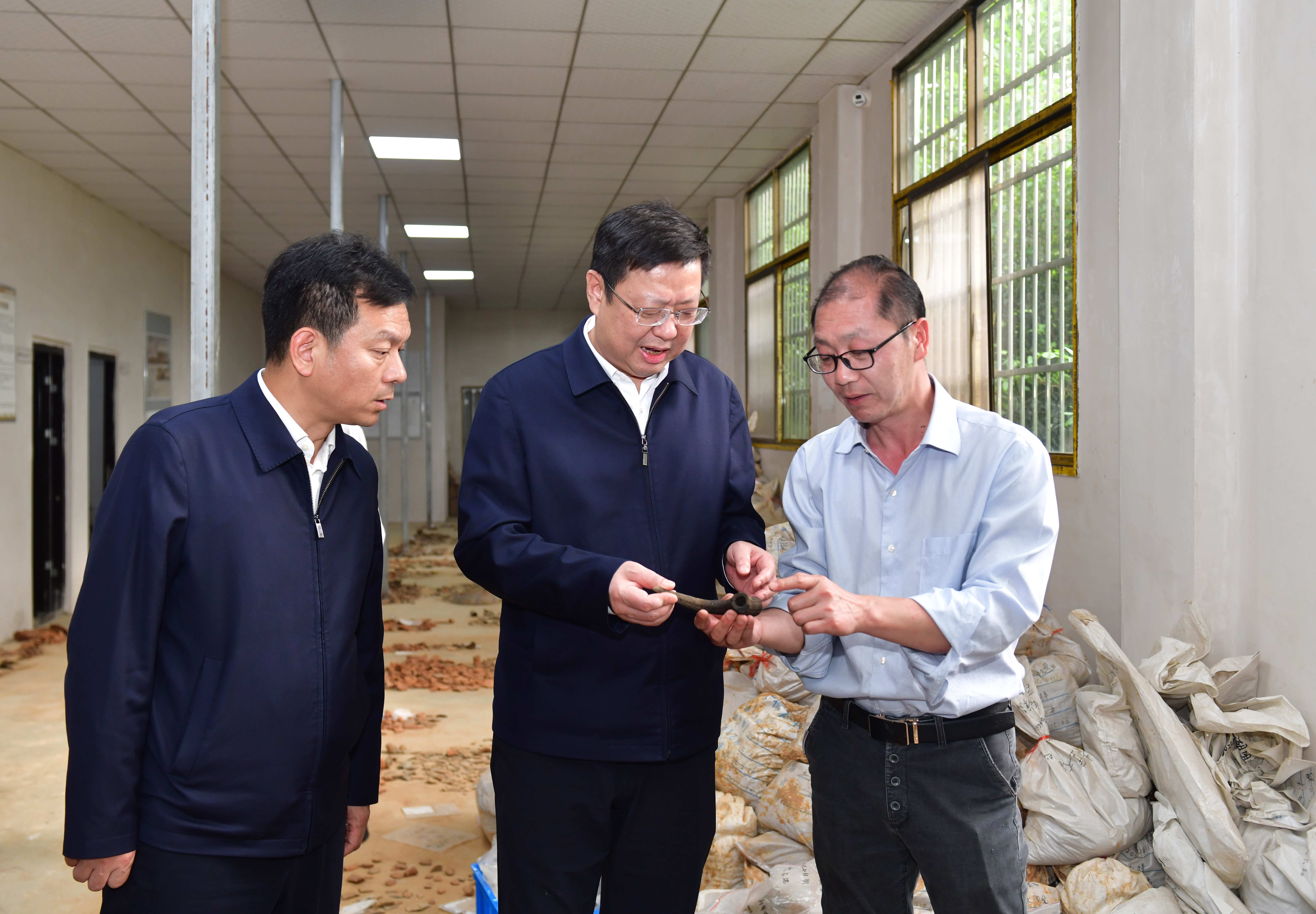 在大湖咀遗址,杨军认真听取了遗址考古发掘与保护工作情况汇报。他强调,要坚持“边开发、边保护、边利用”,充分发挥珍贵历史文化遗产的价值,加强成果阐释与宣传推广,创新运用AI、短视频等新技术手段,推动历史与现实对话、传统与时代共鸣,实现历史场景沉浸再现、文化价值多元体验,让文物考古成果在活化利用中彰显更大价值。