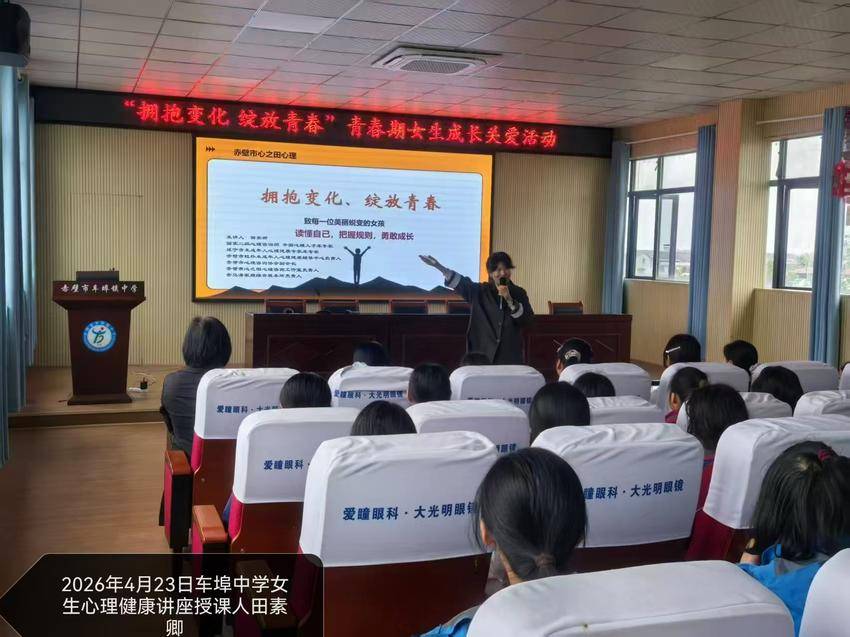 4月23日,一场以“拥抱变化,绽放青春”为主题的心理健康讲座在车埠中学举行。学校全体女生参与。
