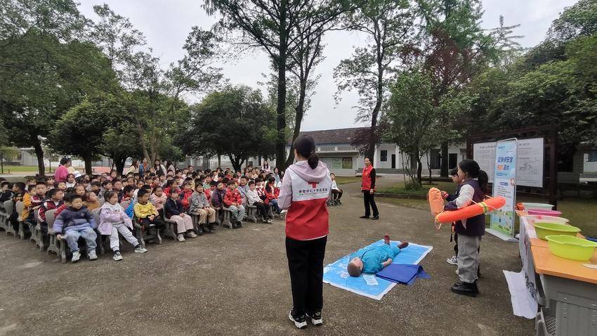4月23日,赤壁市红十字会组织红十字水上救护志愿服务队,深入赵李桥镇中小学校,开展防溺救援大课堂暨安全知识进校园系列活动。