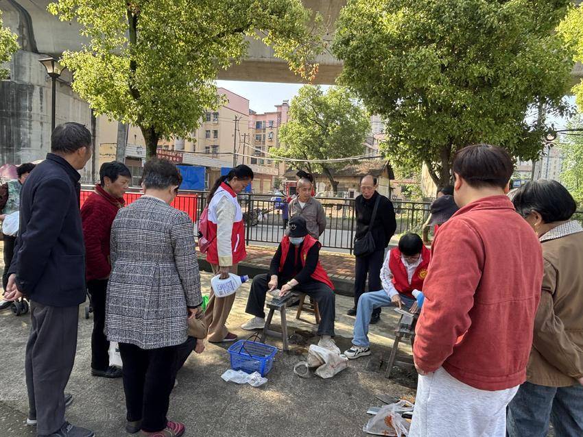 公益理发区里,志愿者专心为60岁以上老人免费修剪头发,手法利落又贴心。“在家门口就能剪头发,又方便又舒服,比去理发店还省心!”刚理完发的周叔叔不住地夸赞。一旁的磨刀摊位前也十分热闹,居民们拿着钝菜刀、剪刀等赶来,志愿者仔细打磨,没一会儿就把刀具磨得光亮锋利。