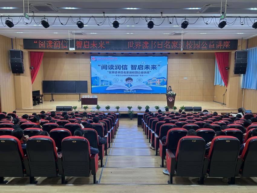 4月24日,赤壁市新华书店以“阅读润信 智启未来”为主题,在赤壁市实验外国语学校开展世界读书日名家进校园公益讲座活动。