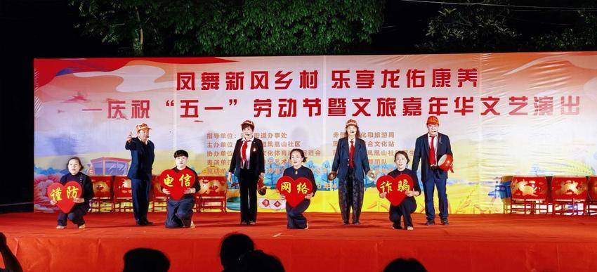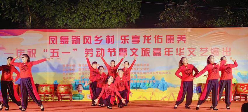 4月26日,为庆祝“五一”国际劳动节,由蒲圻综合文化站牵头的“凤舞新风乡村 乐享龙佑康养 庆祝‘五一’劳动节暨文旅嘉年华文艺演出”,在赤壁市蒲圻街道凤凰山社区一组上演。