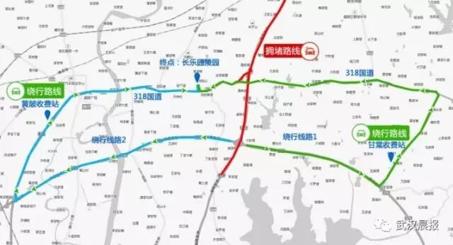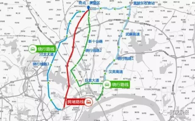 绕行方案三:建议沿武汉市三环线行驶进入汉英高速,转入武麻高速行驶至黄陂东下站到达黄陂区域。