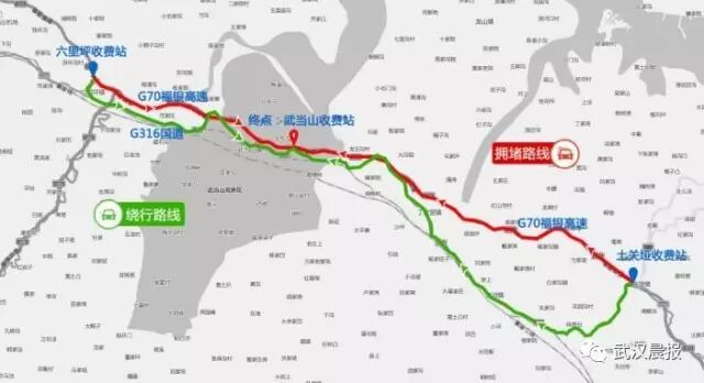 绕行方案:前往武当山风景区车辆,如遇汉十高速汉十向路段出现拥堵,请从六里坪站点下站后向东行驶316国道(福兰线)到达武当山风景区。