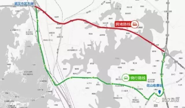 绕行方案:建议武鄂高速的车辆从邹黄互通进入武汉绕城高速,从花山收费站进出武汉市区,避开拥堵路段。