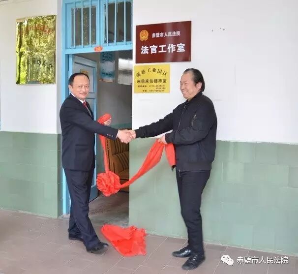 4月1日上午,赤壁法院在赤马港办事处、蒲纺工业园区等5处矛盾多发区设立法官工作室,并举行揭牌仪式。
