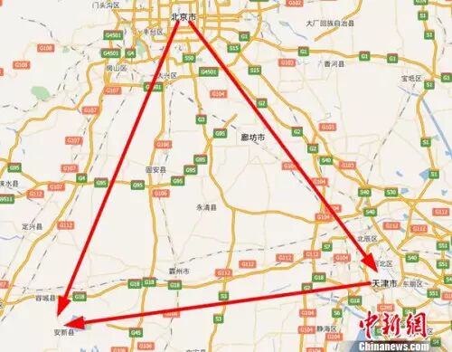 (图为中国设立河北雄安新区。来自地图截图。)