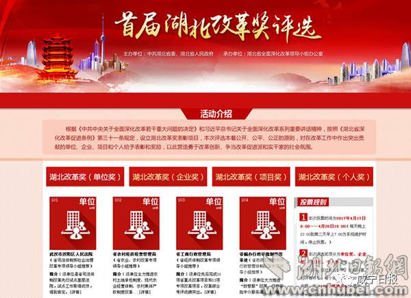 今日,首届湖北改革奖候选名单公布,公众网络投票活动同时启动。