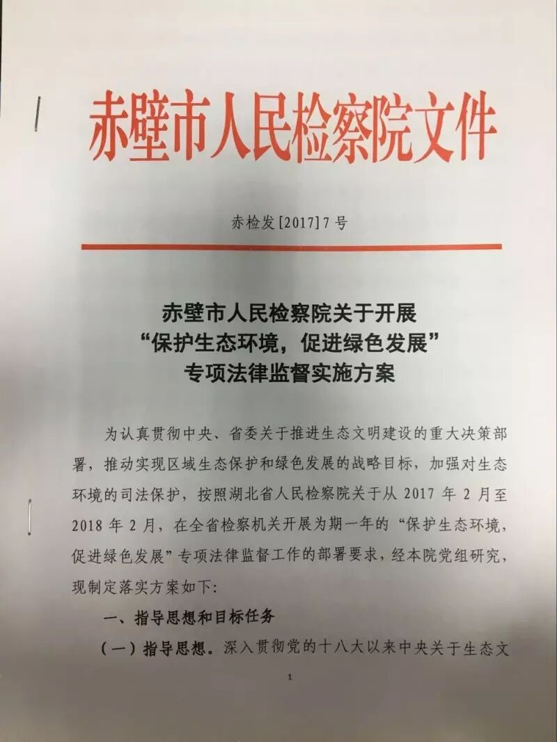 专项法律监督工作最高检、省检察院、咸宁市检察院都进行了专门部署,责任重大,使命光荣。一是抓住机遇,促进赤壁绿色崛起。生态环境在群众生活幸福指数中的分量不断加重,环境污染引发社会公众的集体焦虑,环境事件多发高发,日益成为关系群众健康的民生之患、民心之痛。党的十八大以来,中央把生态文明建设和环境保护摆上更加重要的战略位置,作出一系列重大决策部署,赤壁市委第九次党代会作出了“践行五大发展理念 ,全面推进绿色崛起,开创强而优中等城市建设新局面”的战略部署。开展专项法律监督公正,适逢其时,顺应民意,是推动赤壁绿色崛起的有力抓手。二是加大办案力度,力求实效。专项监督要用案例说话。司法办案是检察机关专项监督最有力的手段,检察机关和相关行政执法部门将积极配合,齐心协力,深挖细查破坏生态环境犯罪背后的职务犯罪。综合运用多种方式,不断强化对生态环境领域民事行政诉讼的法律监督,加强对公益诉讼案源线索摸排,依法定程序适时提起环境保护公益诉讼。积极探索生态环保司法适用恢复性司法理念的方法路径,建立“补植复绿”等机制。在对犯罪分子依法批捕起诉的同时,依法提起刑事附带民事诉讼,要求破坏环境的行为人依法停止侵害、排除妨碍、恢复原状或者修复环境、赔偿损失,最大限度地发挥司法对生态环境的促进和保障作用。三是加强协调,形成合力。创新完善生态环境保护领域“两法衔接”工作机制。坚持把生态环境保护领域的“两法衔接”机制建设作为推进“两法衔接”工作的重中之重,不断加大力度,加快进度,努力推动生态环境保护的行政执法信息及时上传和涉嫌犯罪案件的网上移送、网上监督,实现无缝衔接。