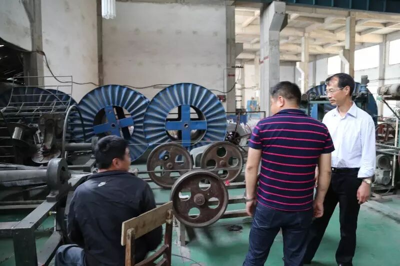 ▲武汉金牌电缆股份有限公司主要生产各种规格的电力电缆,该公司通过创新产品,推出核心品牌,在赤壁乃至咸宁市引领行业创新科技的发展,被授予“高新技术企业”称号,是咸宁市首家成功挂牌新三板企业。大图为汪隽检察长与该公司董事长但海(左)交谈,将企业对检察机关的服务诉求一一记录在案。