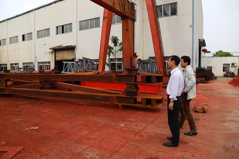▲鄂南起重运输机械有限公司主要从事起重机械和桥梁机械的设计、制造、安装和维修业务。产品主要与国家重点工程配套遍布全国,并出口印度、巴基斯坦、尼日利亚、安哥拉和沙特阿拉伯等国家,深受用户的好评,已成为国内知名企业。大图为汪隽检察长向该公司董事长邱旺生(左)征求对检察干警联系企业意见和建议。