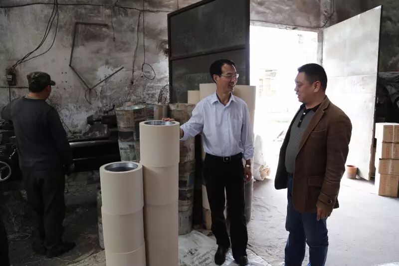 ▲湖北楚鑫粮食机械有限公司系湖北省最大专业性砻谷胶辊生产厂家。汪隽(上图左)检察长向该公司董事长徐彬文(上图右)详细了解企业历史、产品、营销等情况,征求检察机关针对性服务企业的意见和建议。
