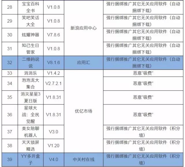 近日,北京市通信管理局通告2016年第四季度电信服务有关情况,对北京地区手机应用商店的各类APP软件进行抽测,共发现39款违规手机应用软件,已要求相关手机应用商店下架处理。