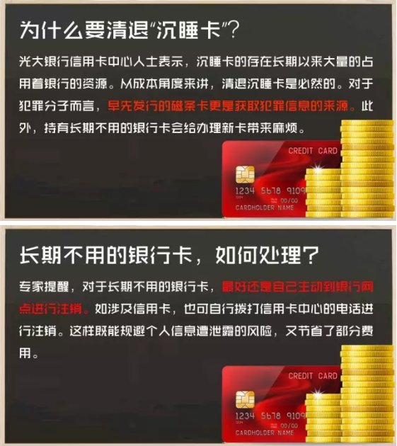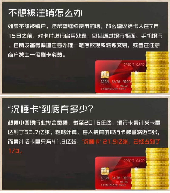 目前,各家银行在判断哪种是“沉睡的银行卡”时,标准不一。
