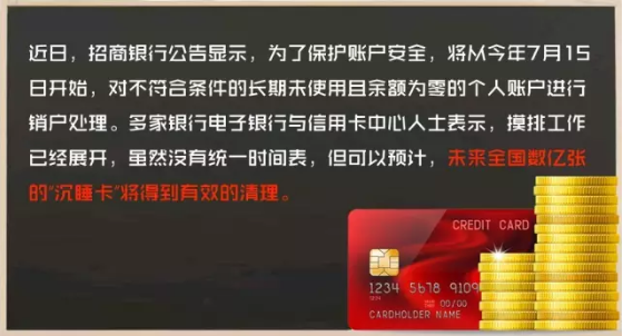招商银行近日的公告显示,为保护账户安全,将从7月15日开始,对长期未使用且余额为零的账户进行销户。多家银行也表示,类似主题的摸排工作已展开,预计全国数亿张沉睡卡将得到有效清理。你手上有这样的卡吗?该如何处置?