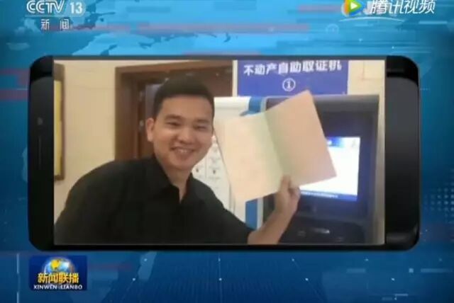 市民孔先生用手机,拍下了自己使用24小时不动产证自助发证机的一幕。