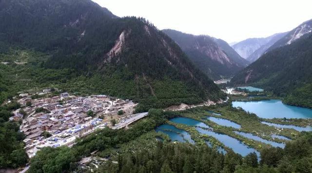 △航拍震后的九寨沟景区