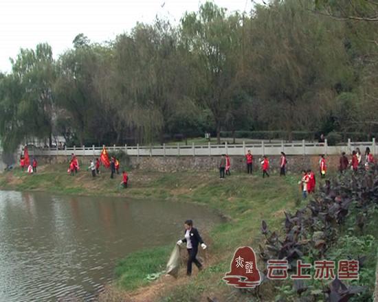 云上赤壁消息(实习记者 王玉成)11月10日,蒲圻办事处组织社区工作人员和志愿者120余人到杨家湖开展“清河行动”,对杨家湖水面垃圾和沿岸垃圾、杂草进行仔细清理,全力打造水清岸美的水域环境。