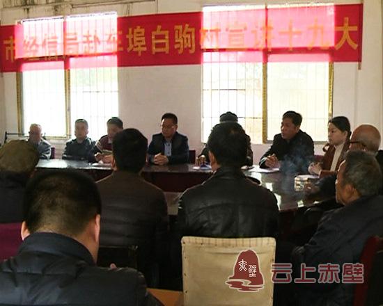 云上赤壁消息(实习生 章威)11月28日,市经信局组织干部职工到车埠镇白驹村以张贴标语、召开专题学习会、入户走访等形式宣传贯彻党的十九大精神,鼓励当地贫困户增强脱贫信心。