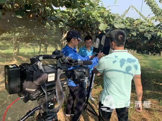 云上赤壁消息(记者 张徐良)9月9日上午,央视新闻频道摄制组来到赤壁市官塘驿镇御屏山村半岛猕猴桃基地,直播赤壁市猕猴桃大丰收场景。赤壁市融媒体中心全程协助央视现场安装调试机器设备,搭建直播平台,确保直播顺利安全播出。这也是中央电视台连续第二年直播赤壁市猕猴桃丰收场景。