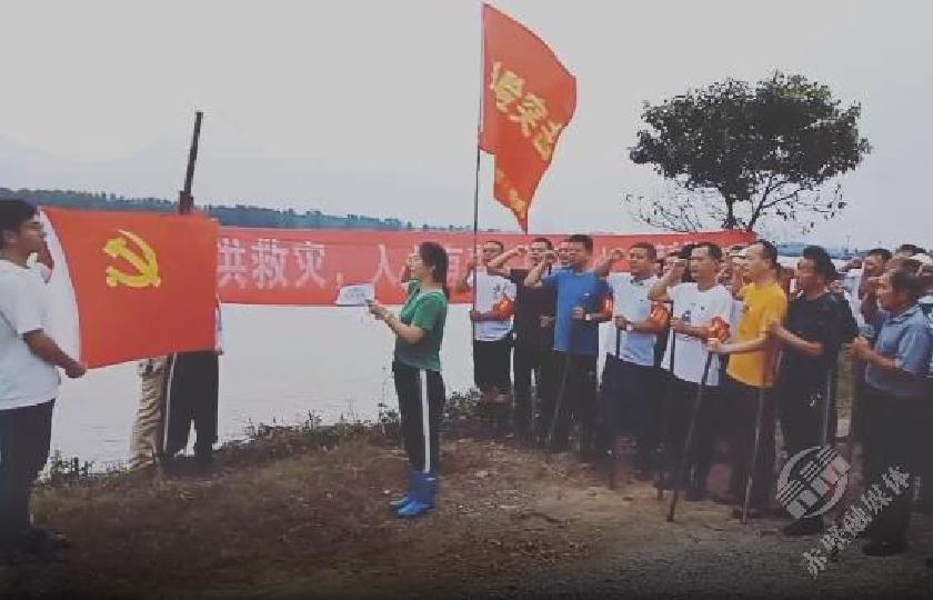 - 【防汛一线党旗红】党旗在赤壁干堤飘扬